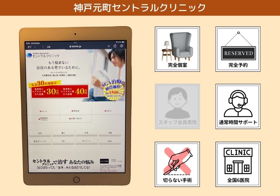 3.神戸元町セントラルクリニック | 30,000円(税込み) | 3.皐月クリニック神戸元町院 | 55,000~440,000円(税込み) |
