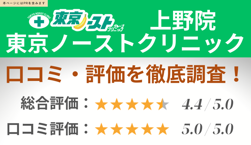 | 4.東京ノーストクリニック上野院 | 3.9 / 5.0 |