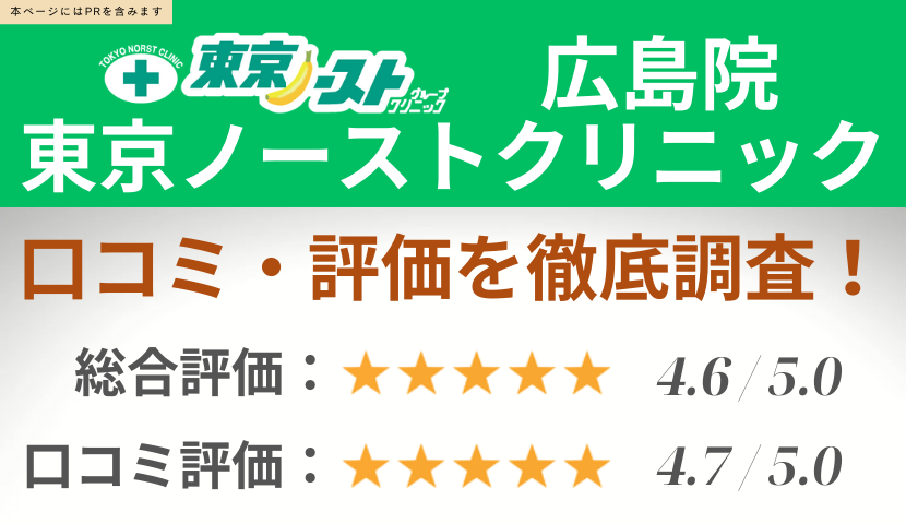 東京ノーストクリニック広島院の口コミ16件を徹底調査!独自レーティング基準により評価しています