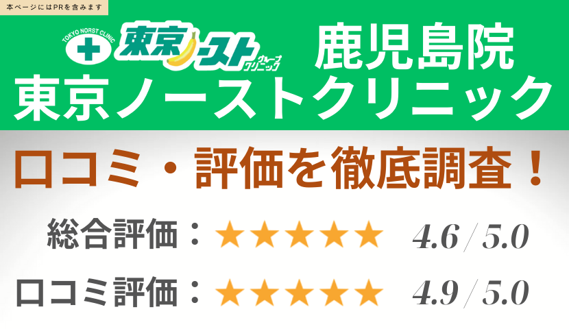 東京ノーストクリニック鹿児島院の口コミ10件を徹底調査!独自レーティング基準により評価しています