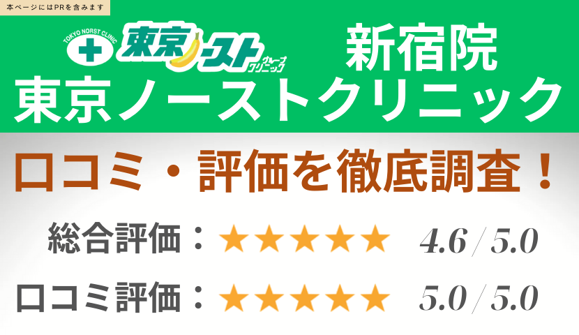 | Googleの口コミ | 東京ノーストクリニック新宿院の口コミを見る |
