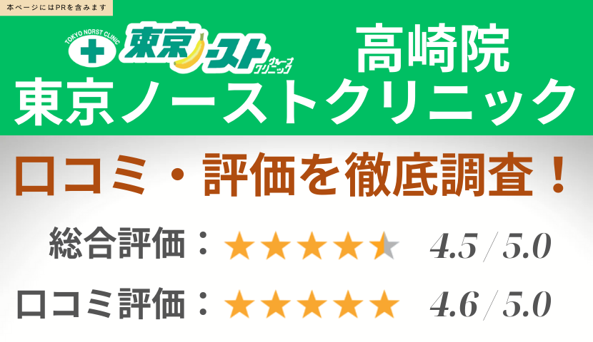 - 東京ノーストクリニック高崎院の悪い口コミと良い口コミ