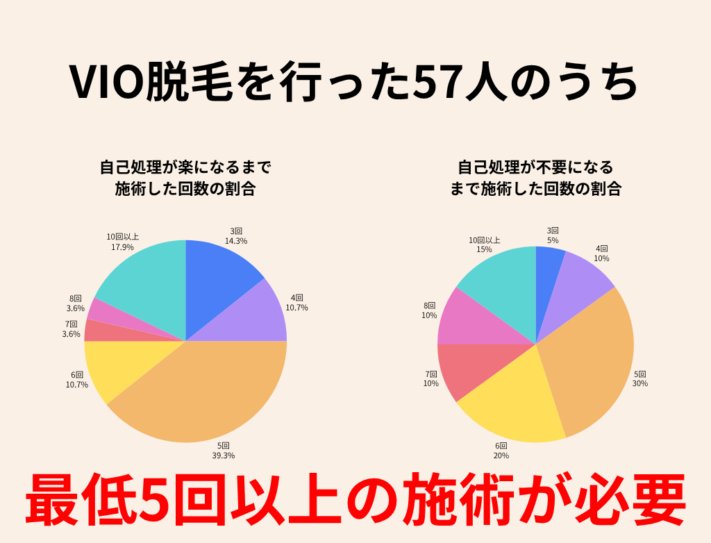 しかし、VIOの場合は部位ごとに毛質や皮膚の特徴に差があるため必要な回数も異なります。
